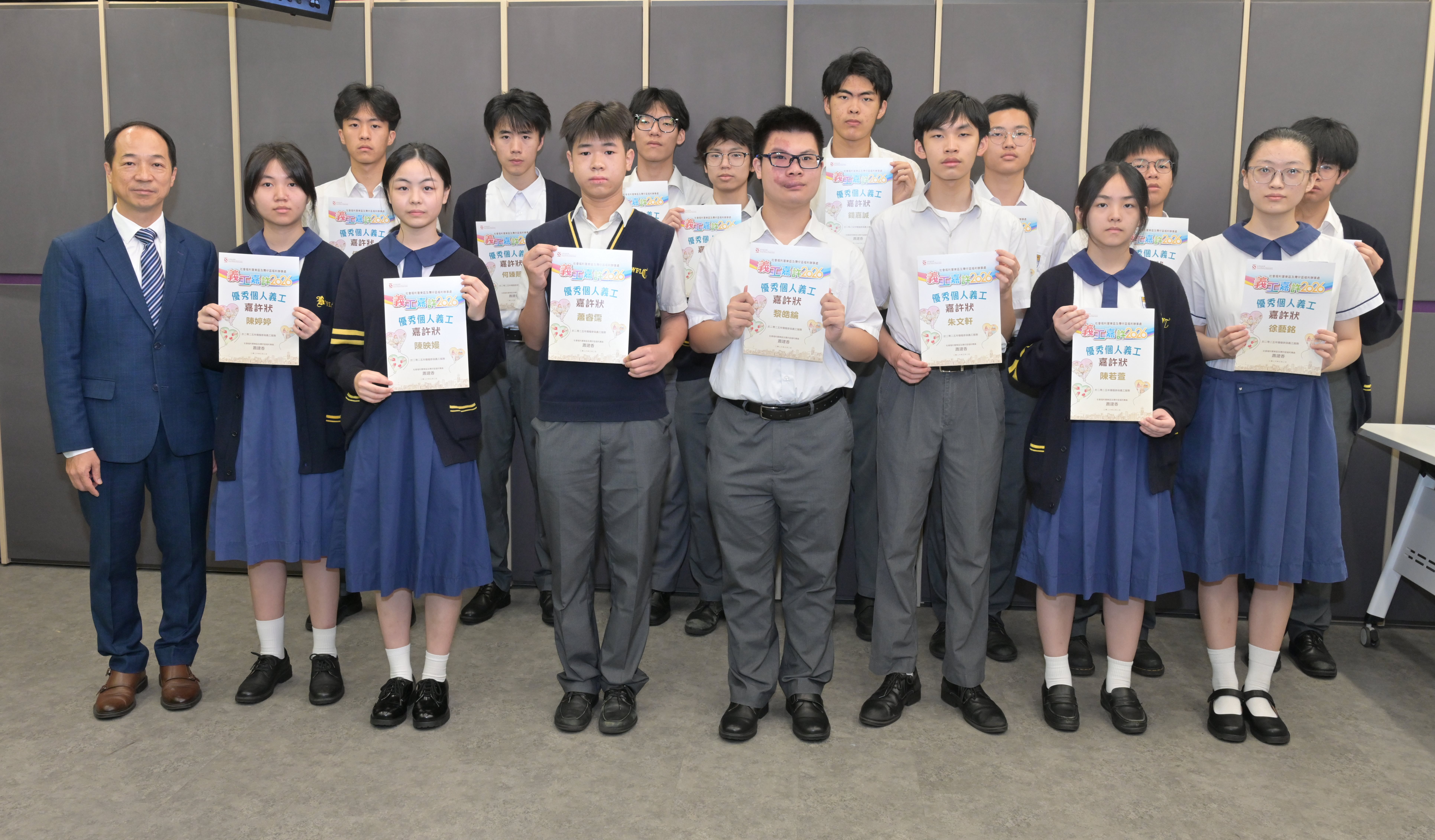 「卓越個人義工」嘉許狀 5A 麥裕和5A 吳子杰5A 陳柏曦 「優秀個人義工」嘉許狀 3A 陳映嫚3D 蕭睿霈4A 黎皓綸4B 蘇宏軒4D 朱文軒4D 傅炳權4D 何臻熙4D 林金炫5A 陳澤榜5A 陳尚朗5A 郭璟賢5A 鄧展瑜5B 施堯錕5D 陳若萱5D 陳婷婷5D 錢嘉誠5D 徐藝銘6A 廖良喜6B 古心妮6B 詩琪6C 劉逸燊6D 陳柏希6D 陳釔峰6D 李筠程6D 譚泳桐6D 王景揚6D 庄荣泓