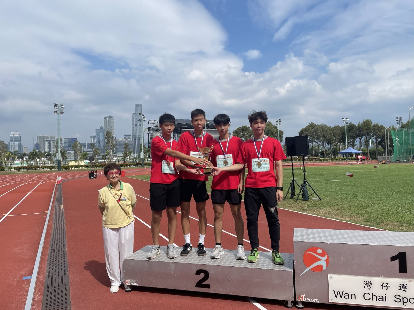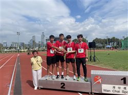 主辦:灣仔體育總會/灣仔區文娛康樂體育會/康樂及文化事務署 400米嘉賓接力賽 亞軍 4A 鍾一亮4B 陳奕琛4C 葉世旺5A 王恇諺